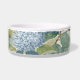 Weiden-Lilien-Magnolie-Tapete Florale Küstenkunst Hund Haustier Napf Zubehör mit schönem Toile Jardin-Stil Druck in Elfenbein, Blau und Grün.