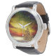 Uhr, Vintage Männeruhr mit schwarzem Lederarmband