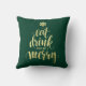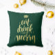 Weihnachten essen Drink & sein Merry Green Throw Kissen. Ein festliches Weihnachtskissen mit moderner Schriftzeichen-Typografie mit dem Sprichwort "Eat Drink & be Merry".