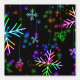Weihnachten fallen verschiedene Neonfarben Schneeflocken SlipperyJoe Gay Pride bekommt LGBTQIA dunkler Hintergrund vibrierende winterliche lebhafte digitale Illustration Blau grün pinkfarben bunten Bokeh Lichter festliche lebendige Atmosphäre Tiefendimension hängen dünnen Linien schwarzen Hintergrund
