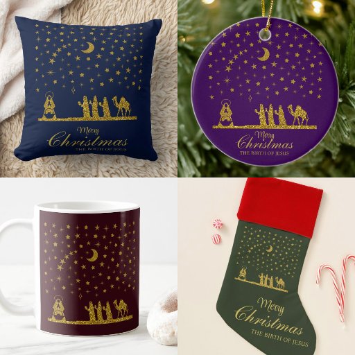 Personalisieren, Religiöse Weihnachten, Geburt Jesu, Jungfrau Mary, St. Joseph und Drei Könige unter dem funkelnden dunkelblauen Sternenhimmel. Erleben Sie die heilige Essenz von Weihnachten, während wir den göttlichen Moment der Geburt Jesu feiern. Du musst wissen, dass du ein Foto bekommst!