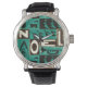 Uhr, Vintage Männeruhr mit schwarzem Lederarmband