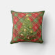 Weihnachtsbaum Kissen grün, weiß kariert und ein glitzernder Weihnachtsbaum und Worte, "Frohe Weihnachten".