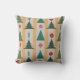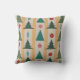 Dieses Kissen ist im modernen Design von Weihnachtsbäumen und Ziergegenständen aus der Mitte des Jahrhunderts, die auf einem Garten mit Gold und Silber-Hintergrund aufgereiht sind.