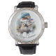Uhr, Vintage Männeruhr mit schwarzem Lederarmband