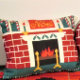 Weihnachten Mantle Brick Fireplace Designer Croche Dekokissen