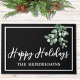 Willkommen Familie und Freunde mit diesem Happy Holidays Türmchen. Es ist mit Aquarellmalerei auf schwarzem Hintergrund dekoriert. Einfach anpassbar. Ändern Sie mithilfe des Entwurfstools die Textgröße, den Stil oder die Farbe. Während wir unsere Kunstwerke erstellen, werden Sie diese exakten Bilder von anderen Designern nicht finden. Original Wasserfarbe © Michele Davies.