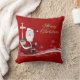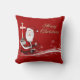 Ein Cartoon Weihnachtsmann und sein Schlitten gefüllt mit Geschenken, die vom Nordpol zu liefern. Hellroter Hintergrund mit weißen verschneiten Dekorationen. Niedliche Weihnachtswerfen Kissen Design.