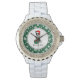 Eine wunderbare Damenuhr mit weißem Armband und grün-weiß-kariertem Ziffernblatt. Trägt sich ganz fabelhaft. Exzellenter Druck, sehr klare Farben. Schönes Design.