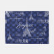 Der Eiffel-Turm, die Wörter "Joyeux Noël" (frohe Weihnachten auf französisch), Paris in der Vintagen Typografie und Vintage französische Aufkleber für Champagner und Kakao im Weiß auf einem tiefen blauen Hintergrund mit hellblauen Schneeflocken stellen eine reizende und interessante französische themed Fußmatte her. Zusammenpassende Einzelteile sind in meinem Zazzle Speicher verfügbar.