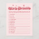 Eine angenehme Ergänzung zu den Themen der Babydusche im Winter. Dieses Spiel ist perfekt geeignet, um die Ideen der Weihnachtsdusche zu integrieren. Es bietet eine festliche Drehung mit dem Thema der Babydusche des Weihnachtsmanns. Ideal für die Ideen der Babydusche im Dezember, kann es für eine rosa Weihnachtsdusche angepasst werden, um die Ankunft eines kleinen Mädchens zu feiern. Erleben Sie Ihre Baby Shower Game Kollektion mit dieser unterhaltsamen und einladenden Aktivität, die die Gäste Liebe werden!