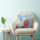 Weihnachts Blue & Red Winter Village & Animals Throw Kissen.