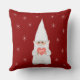 Niedlicher Weihnachtsgnome und Schneeflocken auf krummelrotem Kissen.