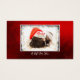 Eine Geschenkkarte, die sagt: Ein Geschenk für Sie. Mit Ihrem Namen und den Worten: Liebe & Mops auf der Rückseite geschrieben. Illustriert mit einem bezaubernden Foto eines Mops Welpen, der beim Tragen einer Weihnachtsmannmütze schläft. Fröhliche Weihnachten ist auf der Hutband geschrieben, in einem trendigen handgeschriebenen Schriftart. Eine Grunge-Grenze mit bunten Weihnachtsbeleuchtung umschließt den Rahmen dieses niedlichen Fotos. Hintergrund ist ein abstraktes rotes Bild.