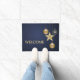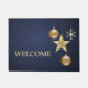Weihnachts Party Golden Ornament Navy Blue Elegant Doormat. Einzigartiges, schönes, stilvolles Design. Leicht personalisiert zu sein. Schriftart Stil, Größe und Farben können geändert werden. Matching-Elemente sind verfügbar.
