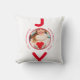 Ein modernes, minimalistisches Weihnachtskissen in Rot und Weiß. Ein schick weißer Hintergrund, mit dem Wort JOY mit roten, fetten Buchstaben geschrieben. Der Buchstabe O wird als Foto verwendet. Personalisieren und fügen Sie Ihr eigenes Foto, Name und Jahr.