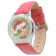 Uhr, Kinderuhr aus Edelstahl mit rosa Lederarmband