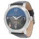 Uhr, Vintage Männeruhr mit schwarzem Lederarmband