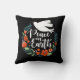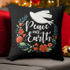 Ein elegantes Weihnachtskissen mit den Worten Weltfrieden in schönen Schriftzeichen. Ein Blumenkranz umgibt den Text mit einer hübschen weißen Taube. Entworfen für Sie durch BlackBerry Boulevard.