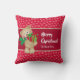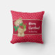 Fügen Sie Ihrer Zuhause eine Touch saisonalen Beifall mit diesem bezaubernden Kissen für Ihren Urlaub hinzu. Auf dem Kissen befindet sich ein Teddybär, der einen grünen Schal trägt und Weihnachtsgeschenke und einen Bonbonstock trägt. Der Hintergrund ist rot und weist weiße, fallende Schneeflocken auf. In der Mitte befindet sich ein dunkelrotes Band mit goldener Grenze und Platz für Ihren frohen Weihnachtsgrüß und Ihren Familiennamen.