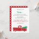 Niedlicher Weihnachtsbaum in einem roten LKW Wir haben die Ankündigung über die Bewegung von Feiertagen verschoben Postcard mit Red Vintage Car und dekorierten Weihnachtsbaum oben