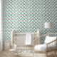 Die Tapete weist ein festliches Muster von Weihnachtsbäumen in verschiedenen Grüntönen auf, die in einem verstreuten, sich wiederholenden Muster auf weißem Hintergrund angeordnet sind. Das Design ist einfach, aber fröhlich und schafft eine lebendige und urlaublich inspirierte Atmosphäre. Die Bäume sind mit einer modernen, minimalistischen Ästhetik harmonisch stilisiert und fügen dem festlichen Thema eine Touch Eleganz hinzu.