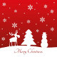 Moderne, schlichte Weihnachtsbilder mit weißen Silhouetten von Rentieren, Baum, Schneemann und Schneeflocken mit fröhlichen Weihnachtsgrüßen auf rotem Hintergrund.