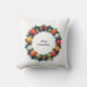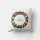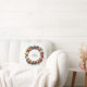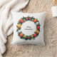 Dieses einfache und stilvolle Weihnachtskissen zeigt ein Bild eines Weihnachtsbaumes in einem Kreis mit fröhlicher Weihnachtsschrift im Inneren.