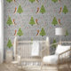 Dieses farbenfrohe Weihnachtsbaummuster im Stil eines Cartoon hat einen anpassbaren Hintergrund. Weihnachten, Bäume, Weihnachtstiere und andere Weihnachtssymbole.