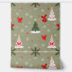 Ein charmantes Urlaubsmuster mit dekorierten Weihnachtsbäumen, roten Bögen, Schneeflocken und Kiefernästen auf einem weichen grünen Hintergrund. Dieses festliche Design erweckt die Wärme der Saison, perfekt für Weihnachtsverpackungen, Urlaubsstimmung oder saisonale Handwerkskunst.