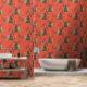 Dieses farbenfrohe Weihnachtsbaummuster im Stil eines Cartoon hat einen anpassbaren orangefarbenen Hintergrund. Weihnachten, Bäume, Weihnachtstiere und andere Weihnachtssymbole.