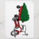 Weihnachtsbaumlieferung in einem kleinen roten Wagen, Dreiradstil. Sehr niedliches Retro-Geschenk.