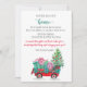 Niedlicher Weihnachtsbaum in einem Roten Kreuz Wir haben bewegte Feiertage Ankündigung Postcard mit Red Vintage Car und dekoriert Weihnachtsbaum und Weihnachtsgeschenke