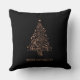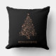 Frohe Weihnachts Text Tree Stars Black Background Metallic Brown Copper Shiny Chic Kissen, können Sie den Text ändern