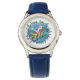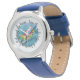 Kinderuhr aus Edelstahl mit blauem Lederarmband