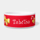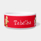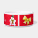 Festliche weiße Keramik Weihnachtsnahrung für Haustiere/Wasserschüssel, wenn grafischer Weihnachtsclipkunst und der Text des Spaßes weiße Sankt Liebling, gegen einen roten Hintergrund lesen. Personifizieren Sie den weißen Skripttext, auf der Front und den Seiten der Schüssel, für Ihr Haustier oder als große Geschenkidee für jeden möglichen Haustierinhaber für die Feiertage.