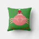 Dieses phantastische Kissen zeichnet sich durch ein lustiges grafisches Design-Bild einer Krabbe mit einer Weihnachtsmannmütze aus. Die Krabbe ist rosa und hat große alberne Augen auf Stalks und riesige pinchy Klauen. Ein lustiges Geschenk für jeden, ob Weihnachten macht sie verrückt oder nicht