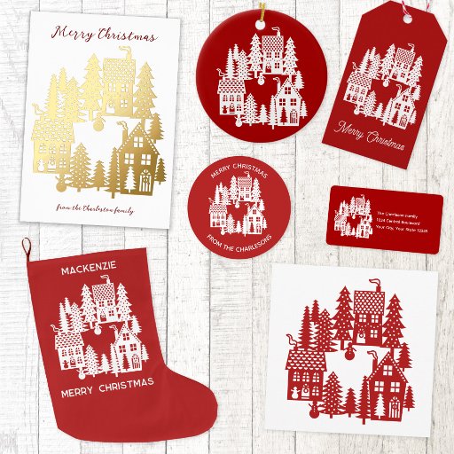 Weihnachtsdorf Red White Geschenkanhänger