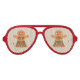 Dieses phantastische Paar Party-Farbtönen zeigt einen niedlichen Cartoon einer bunten Lebkuchenfrau. Sie hat schwarze Augen mit weißen Schülern und hübsche schwarze Wimpern und ein großes Lächeln auf ihrem Gesicht. Sie hat auch rote und grüne Taschen auf ihrem Rock und oben bereit für ein Weihnachtsfest Party.