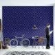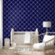 Elegantes, stilvolles und raffiniertes Muster mit weißer Garne auf blauem Hintergrund. Modernes und trendiges Geschenk, ideal für Weihnachten oder Neujahr.