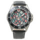 Herrenuhr aus Edelstahl mit schwarzem Lederarmband