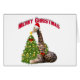 Adorable WeihnachtsGiraffe mit seiner Weihnachtsmannmütze und verziertem Weihnachtsbaum - er platziert den Stern auf den Baum