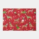 Niedliche Weihnachtshunde in festlichen Urlaubssälen. Grenz-Terrier mit Weihnachtsmannmützen, Geweih und Raute-Pullover auf einem roten Hintergrund mit verstreuten Ornamenten.