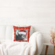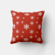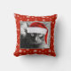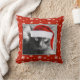 Weihnachtskatze auf rotem Kissen mit Schneeflocken; Spaß-Feiertags-Wurfs-Kissen für irgendeinen Katzenliebhaber! Niedliche schwarze Katze mit Sankt-Kappe, auf einem zusammenpassenden roten Kissen zerstreut mit Schneeflocken