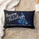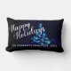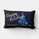 Weihnachtskissen mit blauem Baum-Design bereit, um mit Ihrem Familiennamen zu personalisieren.