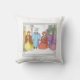 Weihnachtslieder werfen Kissen. Diese schönen Sänger im Schnee, mit Tannenbäumen in der Ferne - sind in altmodischer Kleidung gekleidet - Männer mit Top-Hüten - Damen mit Bonnets. Die Farben Blau, Magenta, Gold, Gelb, Rosa und Rot. Im Hintergrund leuchtet ein altmodischer schwarzer Lampenpol