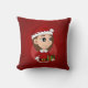 Kissen mit einem niedlichen Lächeln mit langbraunen Haaren, das Mädchen trägt ein Weihnachtskostüm mit einem roten Hut und hält ein Geschenk.