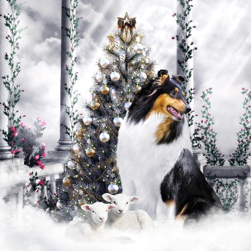 Christmas Magic, Rough Collie Dog & Lambs - SetDesignt von FX Graphica Art & Design