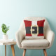 Verzieren Sie Ihr Zuhause diese Ferienzeit mit einem Spaß Weihnachtsthrowkissenkissen, das einen roten Weihnachtsmann-Anzug mit einem breiten schwarzen Gurt und einer Goldschnalle hat.