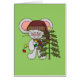 Eine entzückende Weihnachtsmaus in einer roten Strumpfkappe setzt die Schnur der Weihnachtslichter auf den Feiertagsbaum auf Mäusethema-Feiertag T-Shirts, Becher, Karten, Aufkleber, Taschentaschen, Magneten, keychains, Andenkenverzierungen und -kästen, Wanduhren und andere Feiertagseinzelteile.